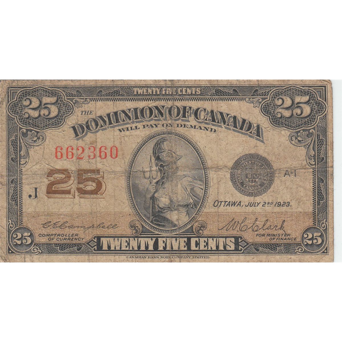 25 CENT DOMINION CANADA FRACTIONAL 1923