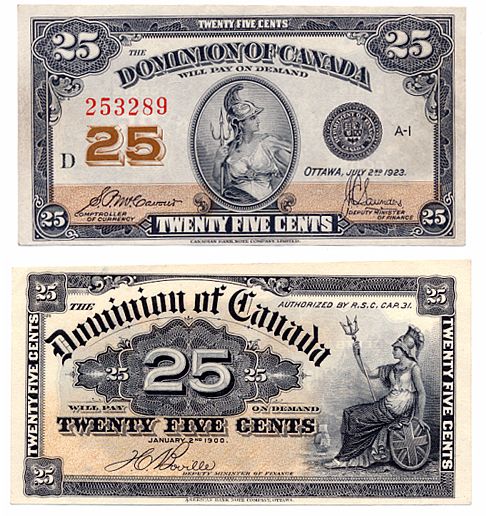 Jan. 2, 1900. DC-15b. Boville. AU; 25 CENTS. July 2, 1923. DC-24c. McCavour. No. D253289. AU. Lot of two (2) notes.