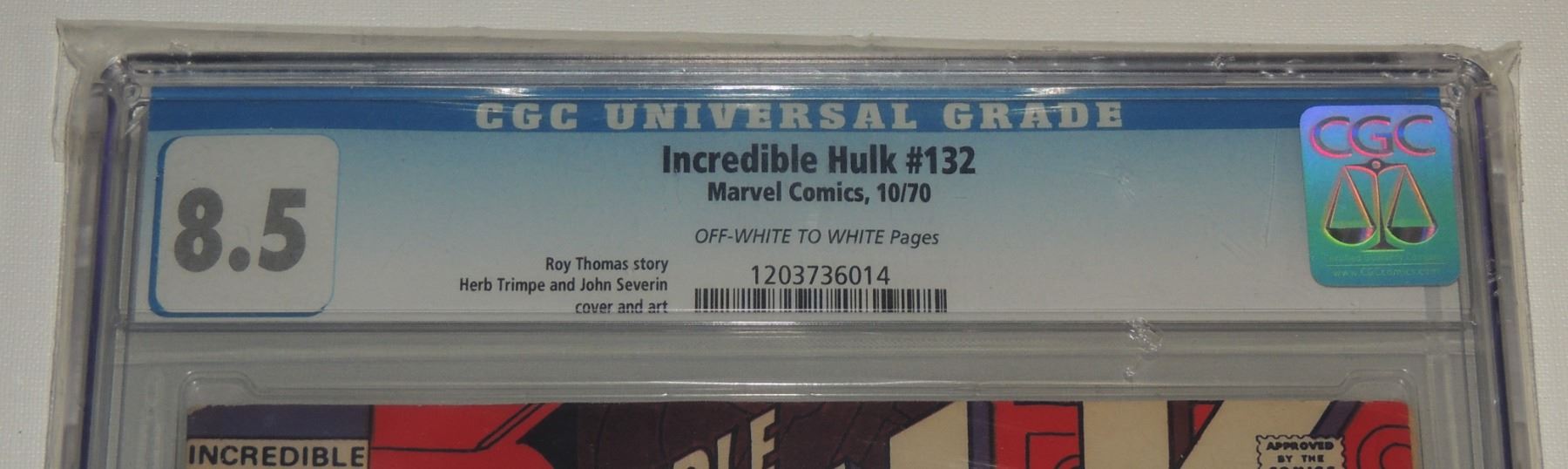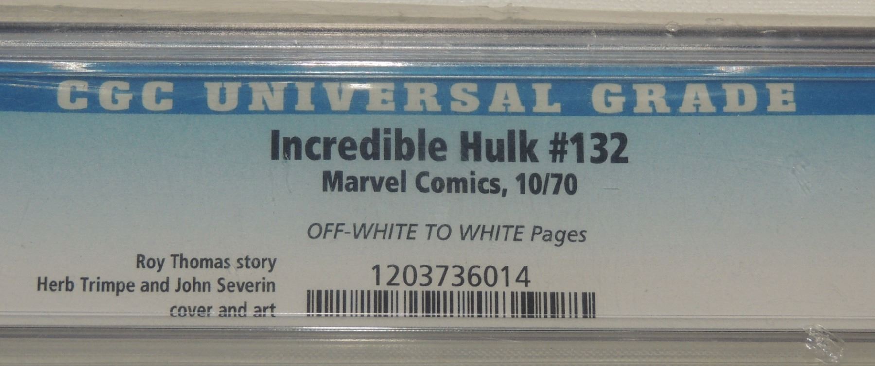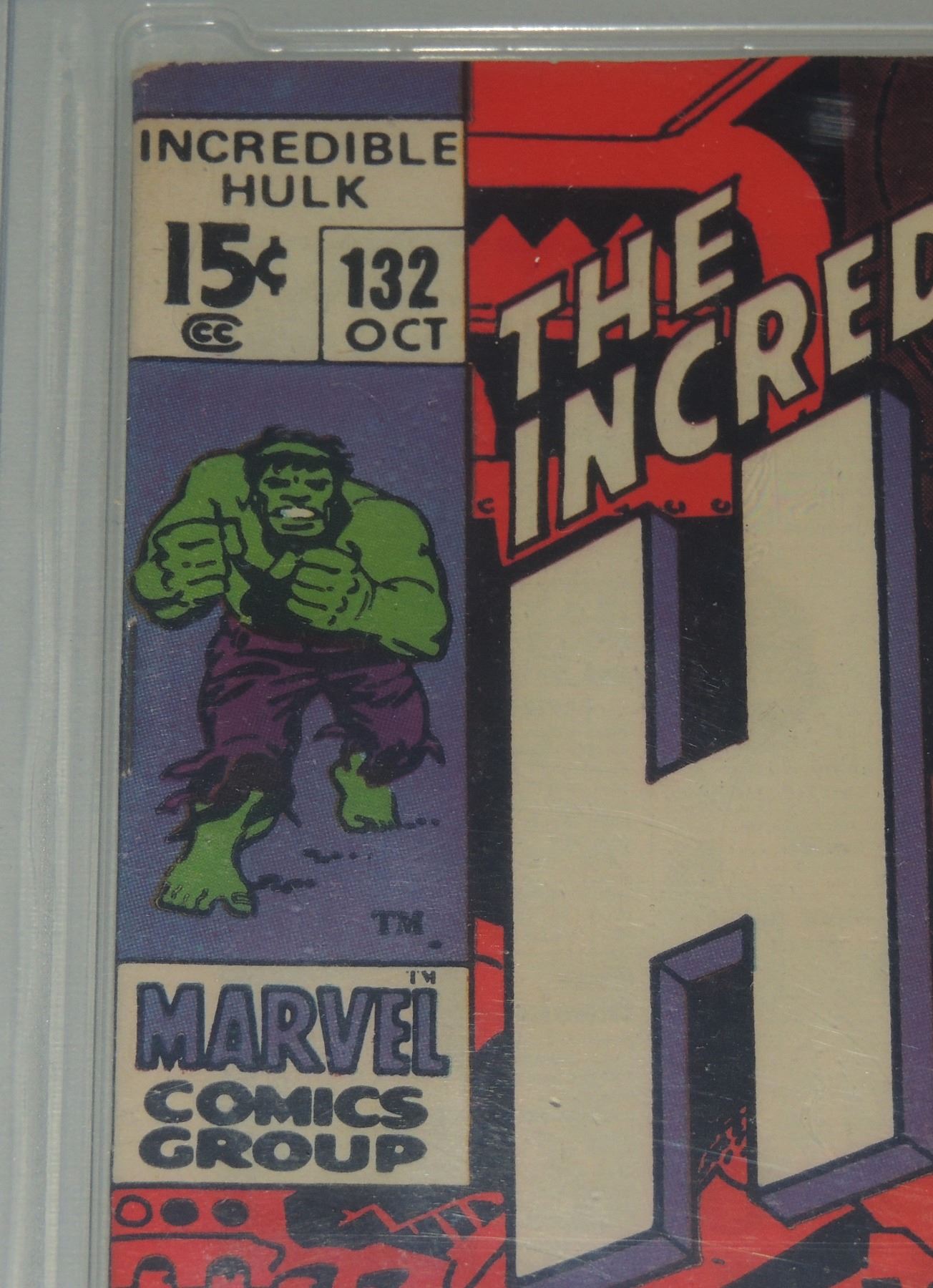 GRADED COMIC BOOK INCREDIBLE HULK 132 OCTOBER 1970 MARVEL COMICS COMIC BOOK, INCLUDES PLASTIC PROTECTIVE COVER OVER GRADED COMIC