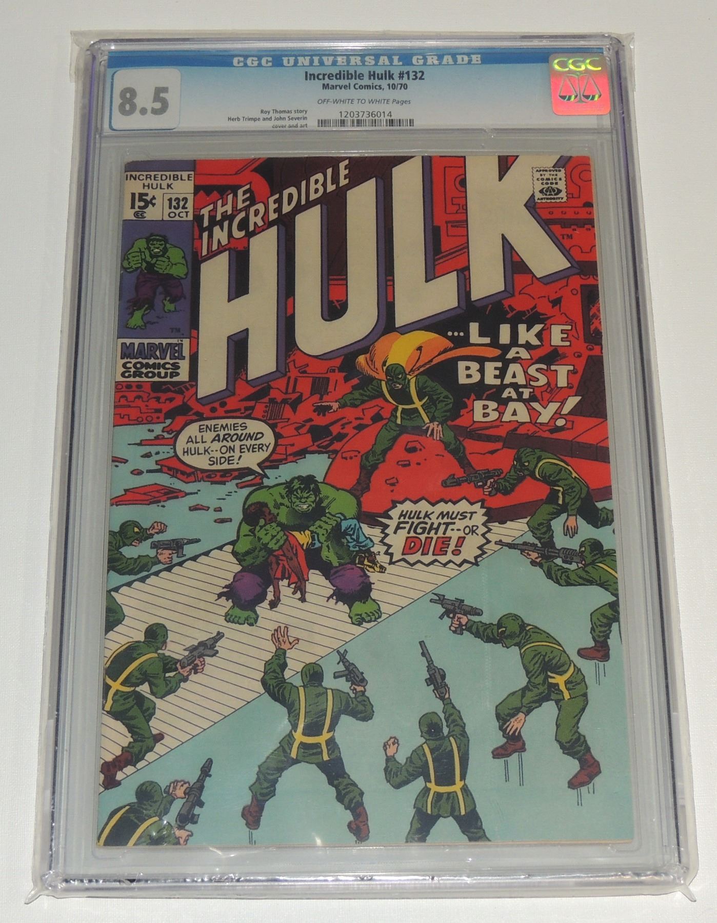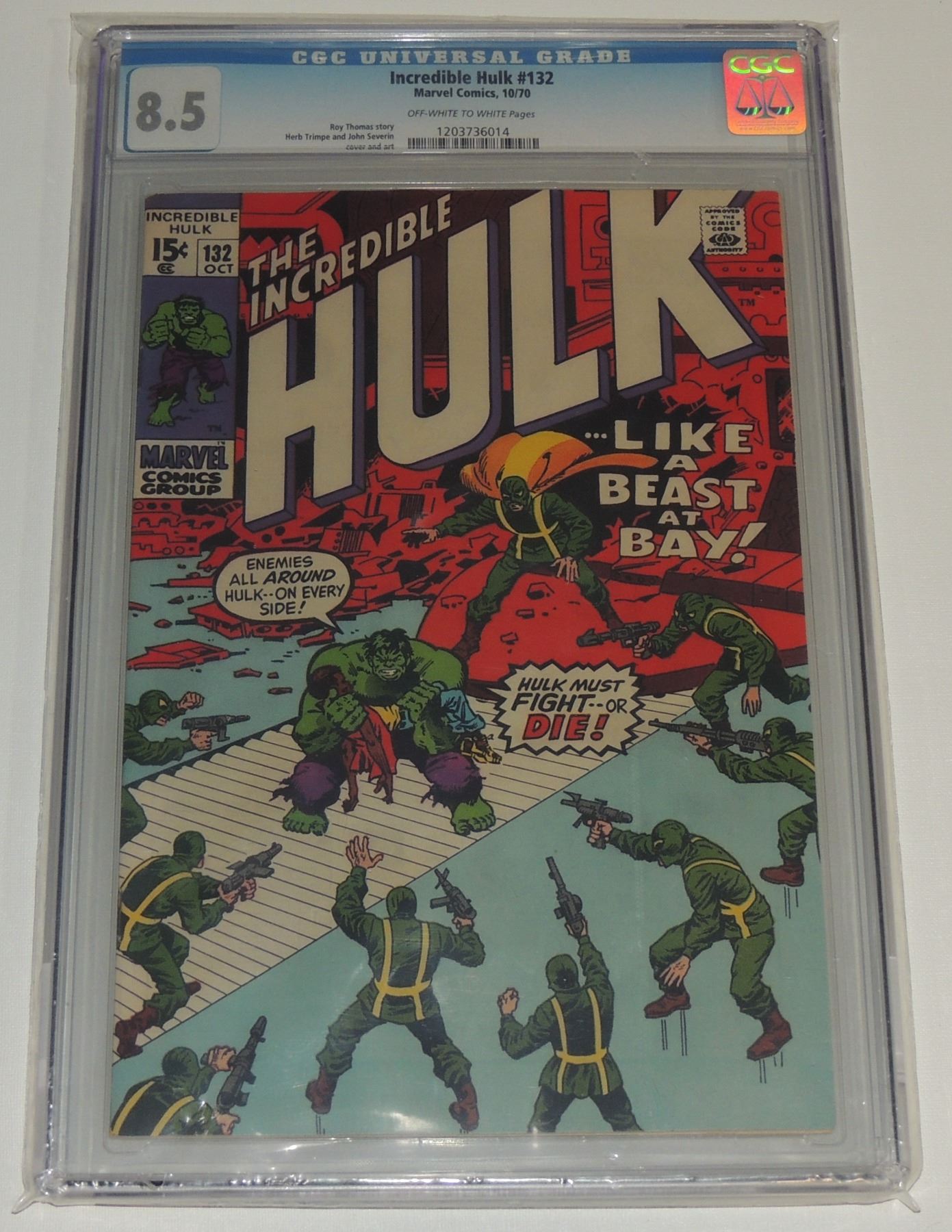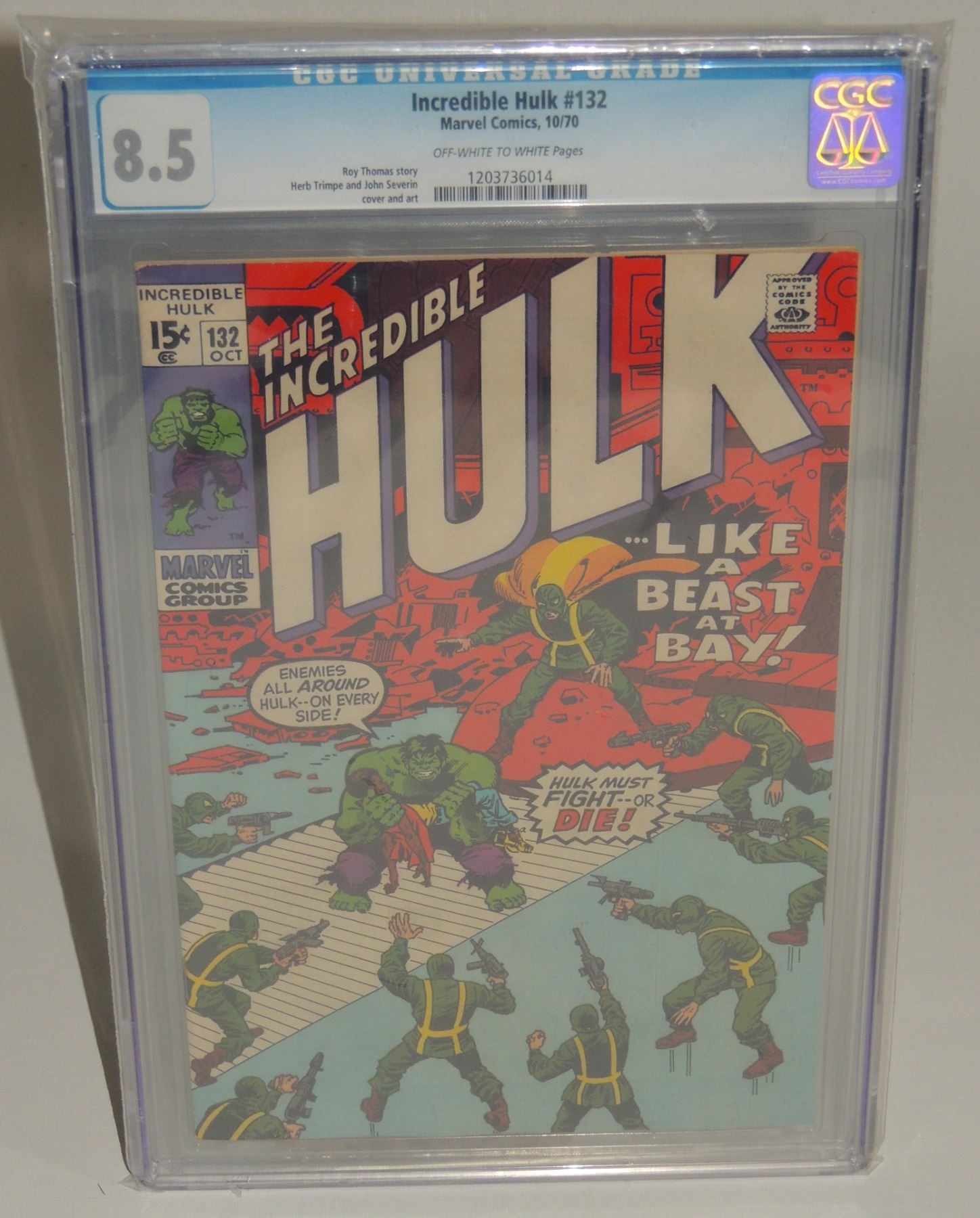 GRADED COMIC BOOK INCREDIBLE HULK 132 OCTOBER 1970 MARVEL COMICS COMIC BOOK, INCLUDES PLASTIC PROTECTIVE COVER OVER GRADED COMIC