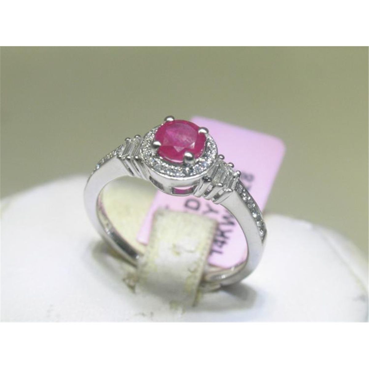 Ruby and Diamonds 14K White Gold RingTotal Weight of 36 Round and Baguette Diamonds - 0.25 CT * One Center round cut Ruby - 0.72 CT * 14K White Gold - 3.28 gramsRing Size: 6-3/4Appraised Value: $ 4,512.00 * *