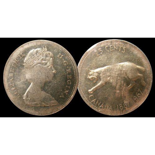 25¢ Canada ERROR coin. CCCS AU-50 Rolled thin planchet error, 3,4grams. Scarce!