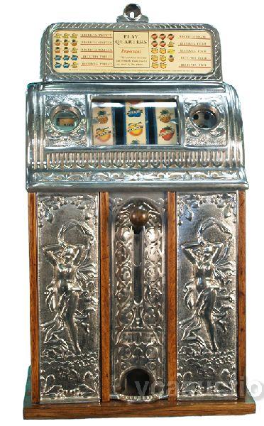 25 Cent Caille Cast-Iron Center Pull Slot Machine, w/ double nude castings w/ keys