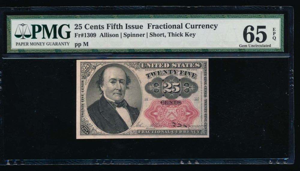 One 25 Cent Fifth Issue Fractional Note PMG 65EPQ.