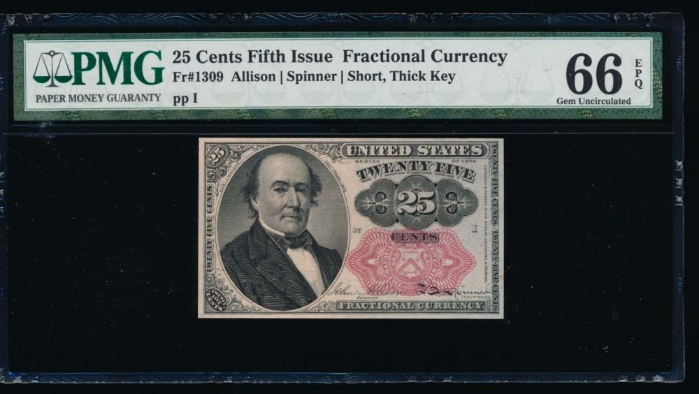 One 25 Cent Fifth Issue Fractional Note PMG 66EPQ.