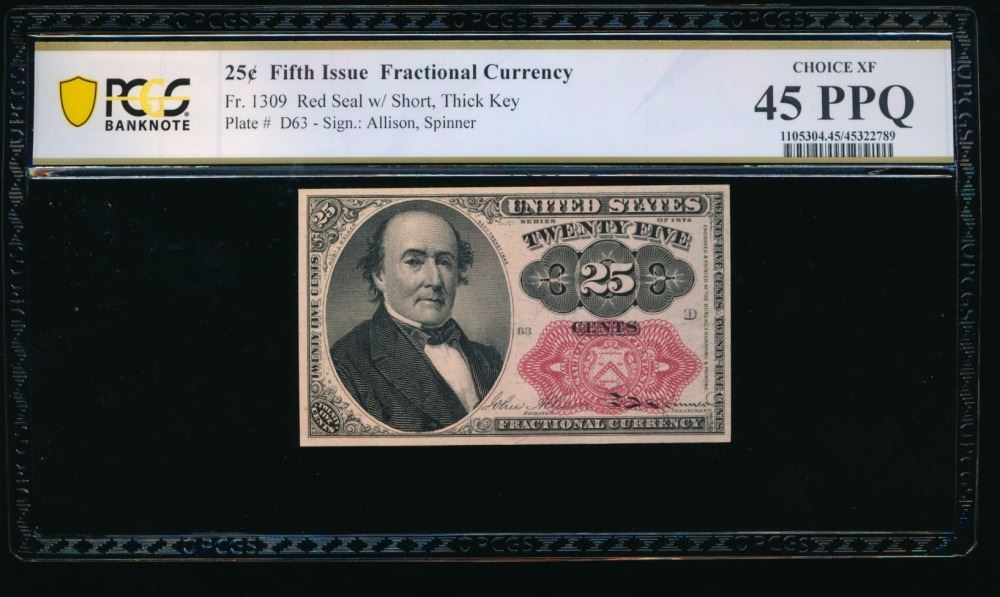 One 25 Cent Fifth Issue Fractional PCGS 45PPQ.