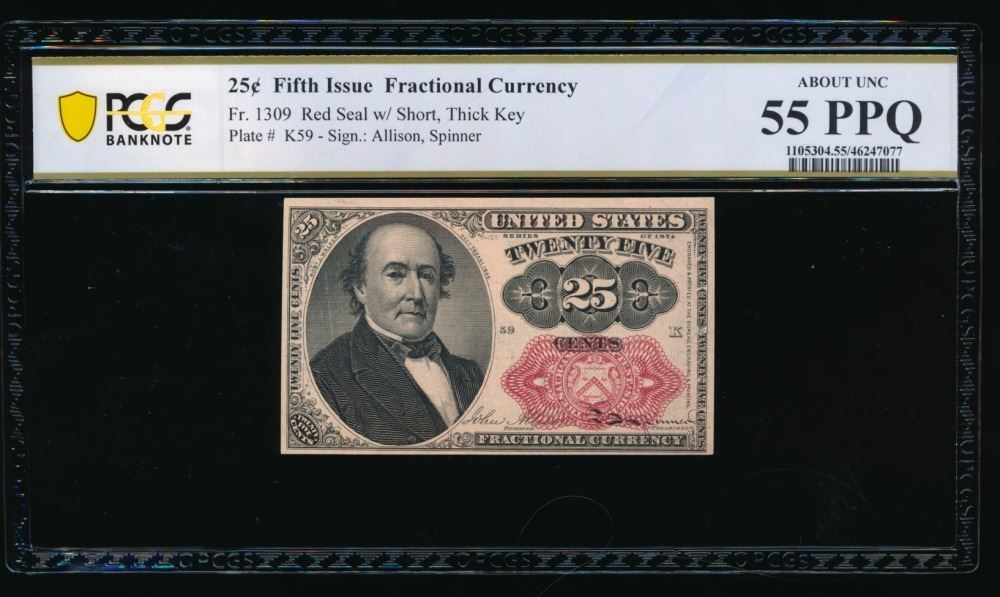 One 25 Cent Fifth Issue Fractional PCGS 55PPQ.