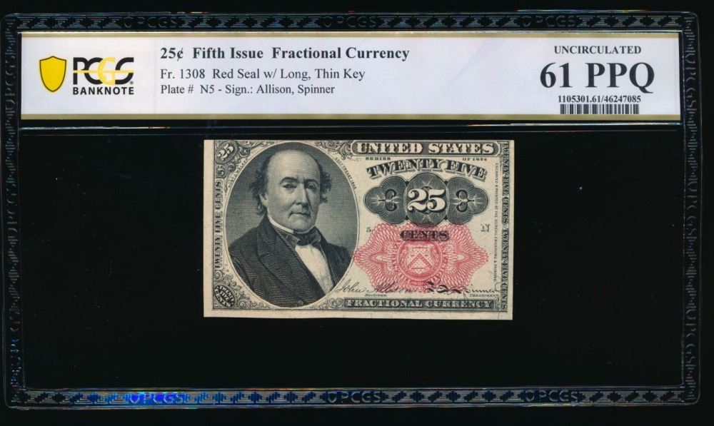 One 25 Cent Fifth Issue Fractional PCGS 61PPQ.