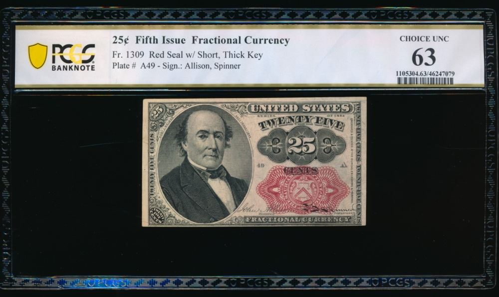 One 25 Cent Fifth Issue Fractional PCGS 63.