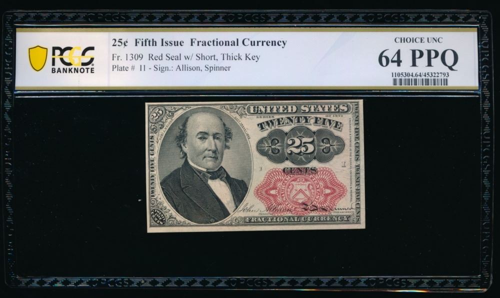 One 25 Cent Fifth Issue Fractional PCGS 64PPQ.