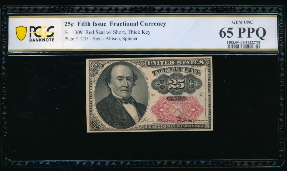 One 25 Cent Fifth Issue Fractional PCGS 65PPQ.