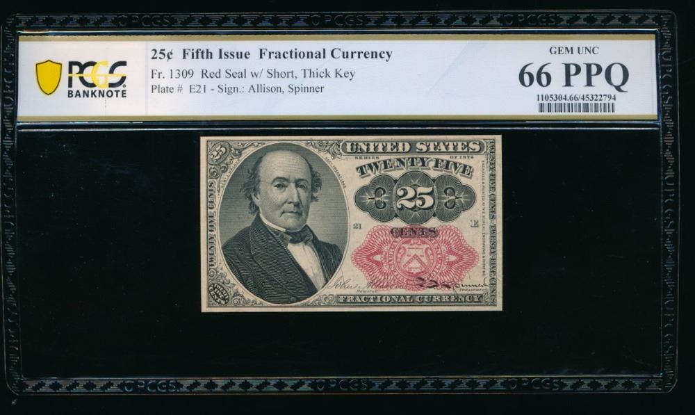 One 25 Cent Fifth Issue Fractional PCGS 66PPQ.