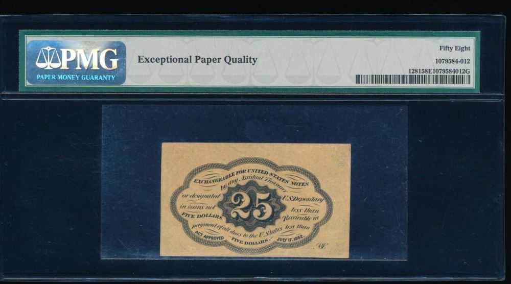 One 25 Cent First Issue Fractional Note PMG 58EPQ.