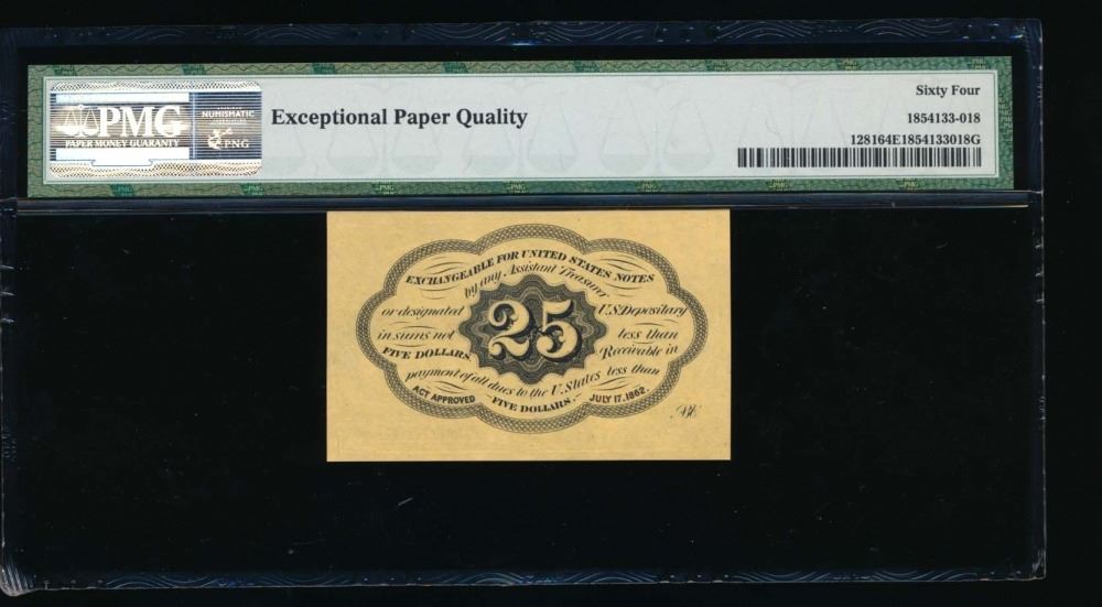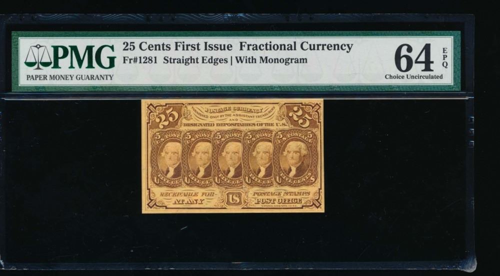 One 25 Cent First Issue Fractional Note PMG 64EPQ.