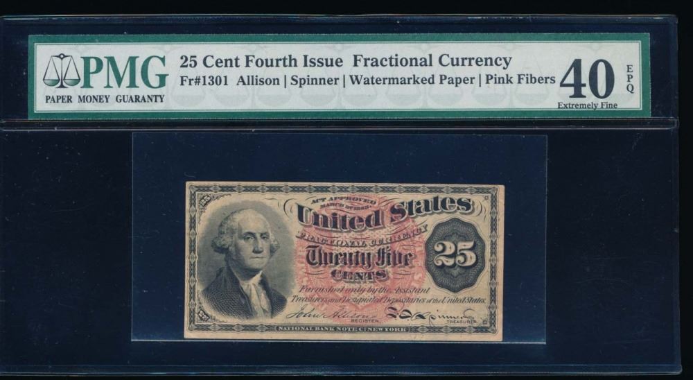 One 25 Cent Fourth Issue Fractional Note PMG 40EPQ.