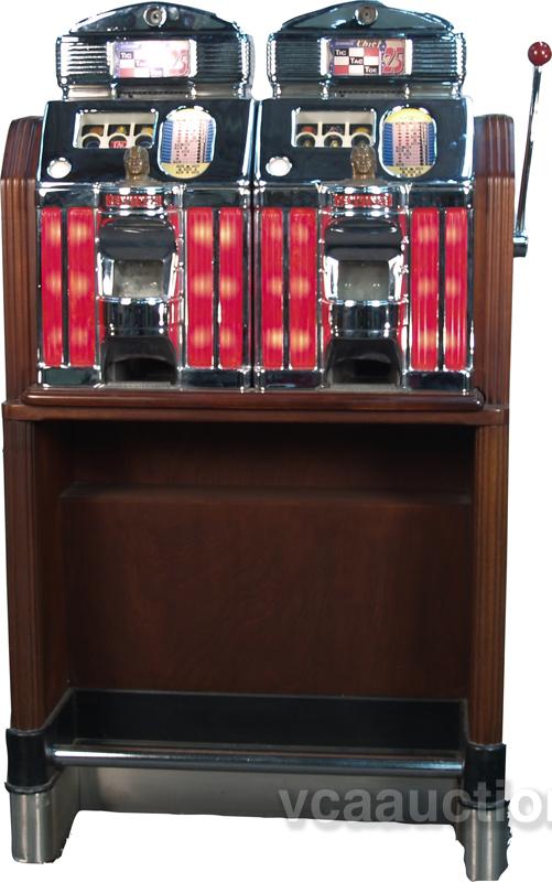 25 Cent Jennings Double Chief TIC-TAC-TOE Jackpot Light-Up Slot Machine's, 2 machines on double slot machine stand w/ keys