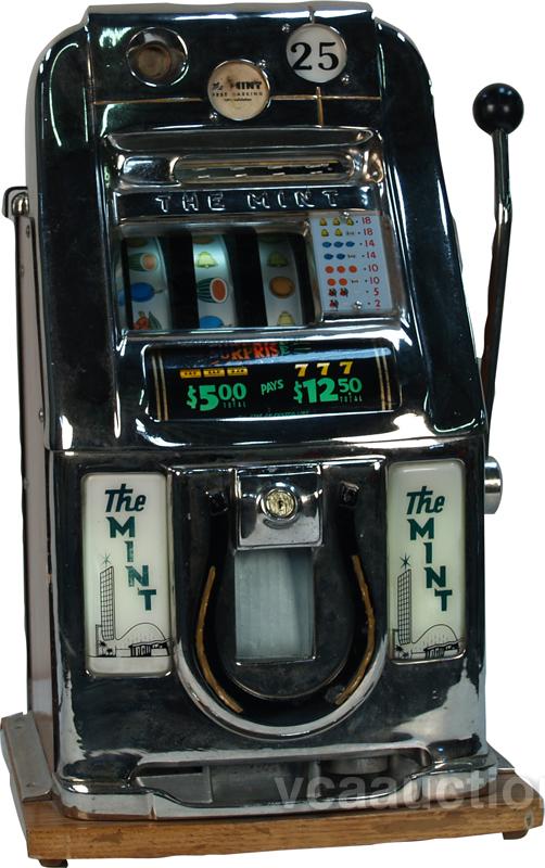 25 Cent Mills Chrome Hi-Top "The Mint" Jackpot Light-Up Slot Machine w/ keys