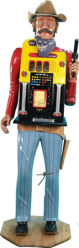 25 Cent Mills Golden Falls Half Top Slot Machine - carved cowboy figure w/ keys