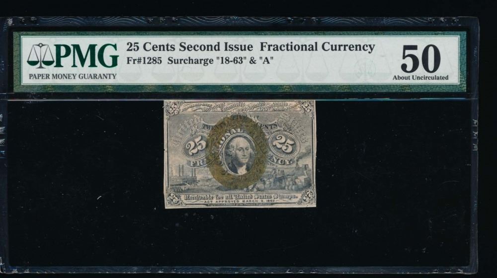 One 25 Cent Second Issue Fractional Note PMG 50.