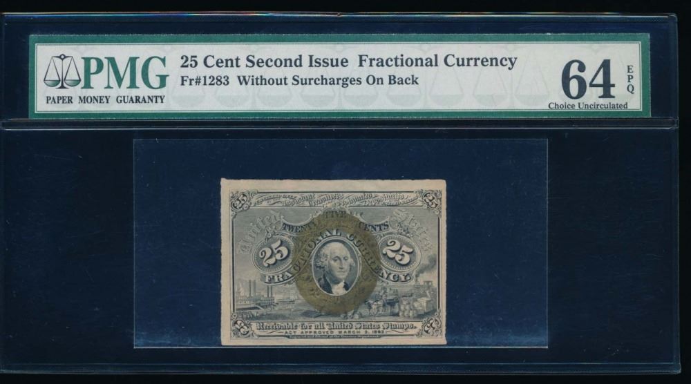 One 25 Cent Second Issue Fractional Note PMG 64EPQ.