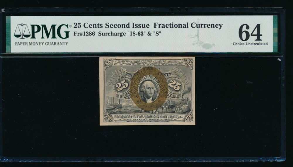 One 25 Cent Second Issue Fractional Note PMG 64.