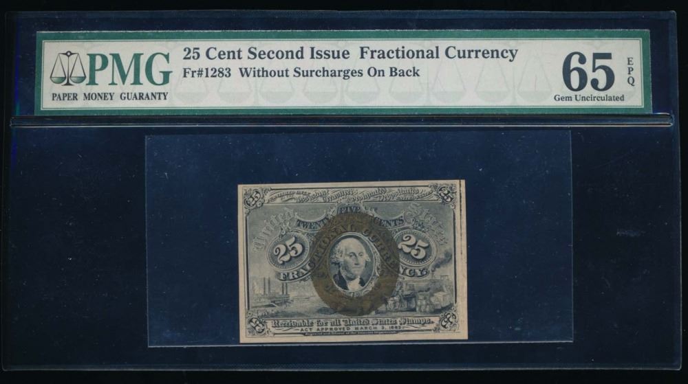 One 25 Cent Second Issue Fractional Note PMG 65EPQ.