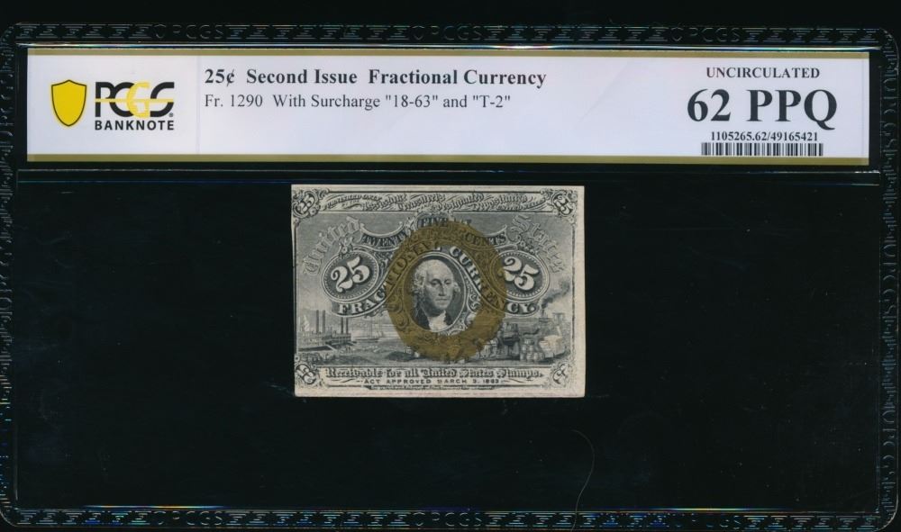 One 25 Cent Second Issue Fractional PCGS 62PPQ.