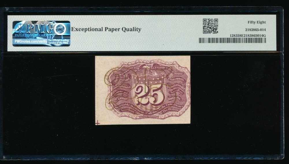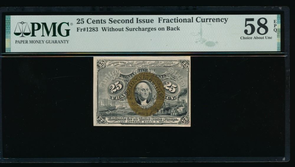 One 25 Cent Second Issue Fractional PMG 58EPQ.