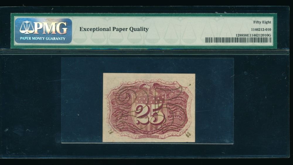 One 25 Cent Second Issue Fractional PMG 58EPQ.