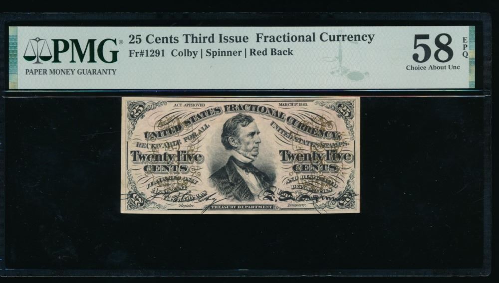 One 25 Cent Third Issue Fractional PMG 58EPQ.
