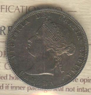 25 Cents 1870, graded ICCS AU-55; Obverse 1. Darkly toned with underlying taupe and green luster.