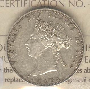 25 Cents 1870, graded ICCS EF-45; Obverse 1.