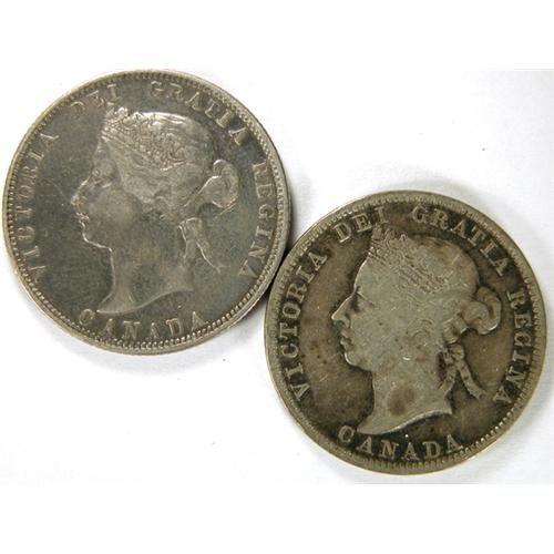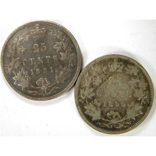 Canada Twenty-Five Cents 1881H and 1899, both F-VF, lightly toned