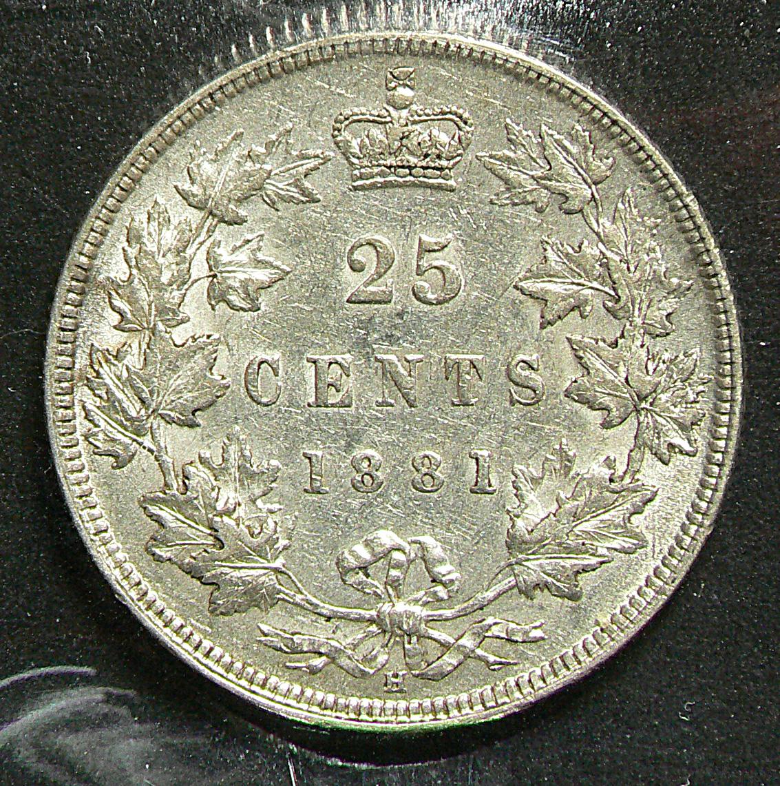 25 Cents 1881H, graded CCCS EF-40. Very good example.