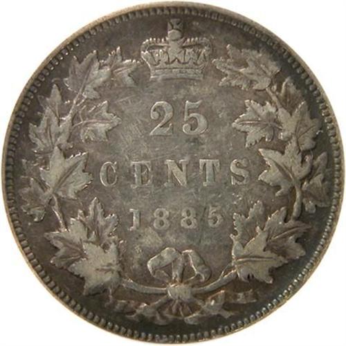 Canada Twenty-Five Cents 1885 Small Top 5 ICG VF-20. Light toned