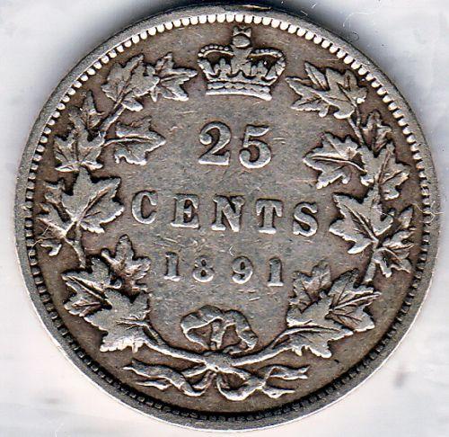 25 Cents 1891 ICCS certified F-12. Problem free.