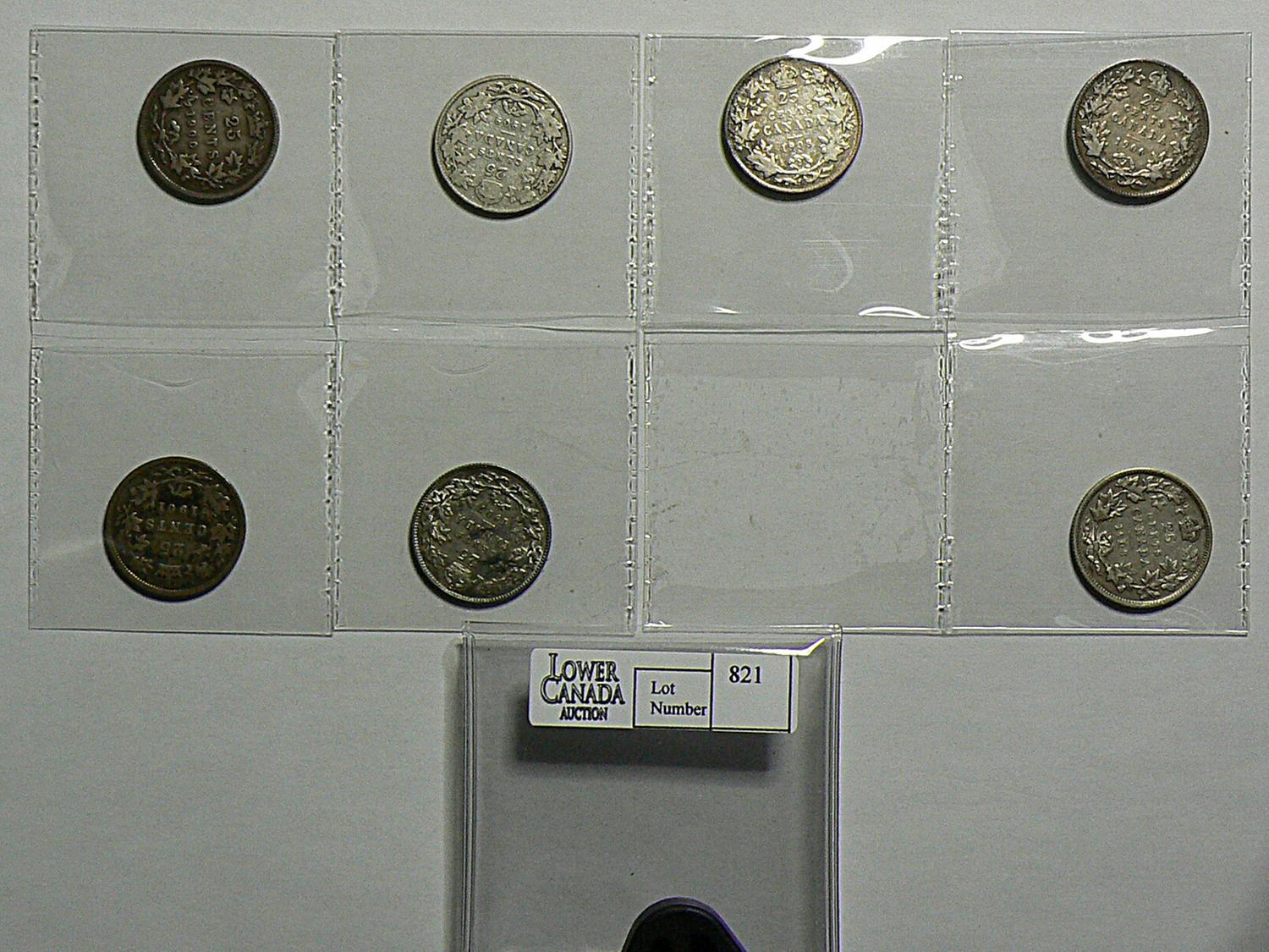 25 Cents 1900, 1901, 1903, 1906, 1907, 1908, 1909, grades from G - F. Lot of 7 coins.