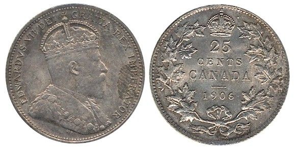 25 Cents 1906 Lg Crown ICCS MS64. Lustrous through red and pink shades.