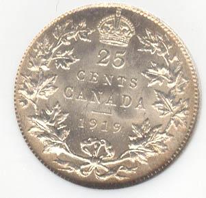 25 Cents 1919, graded NGC MS-65.