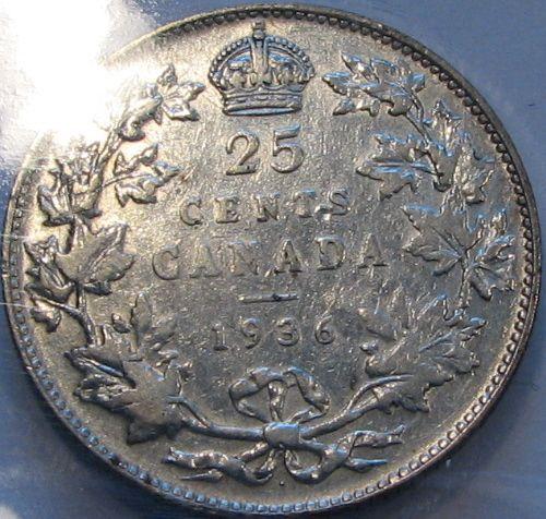 25 Cents 1936 CCCS certified VF-20; Dot. Nice example of the dot 36.
