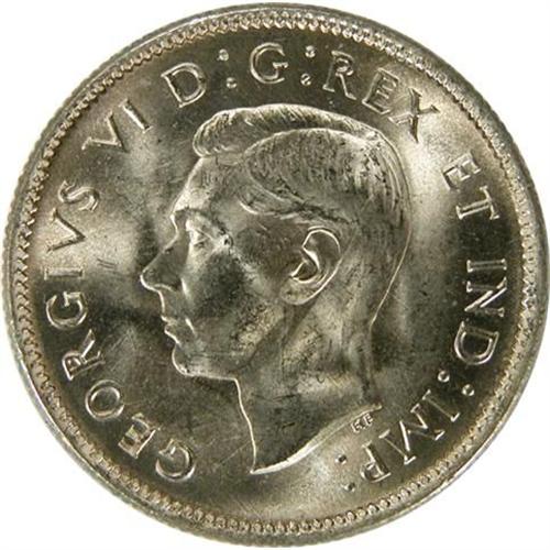 Canada Twenty-Five Cents 1939 Choice Uncirculated. Pale toning