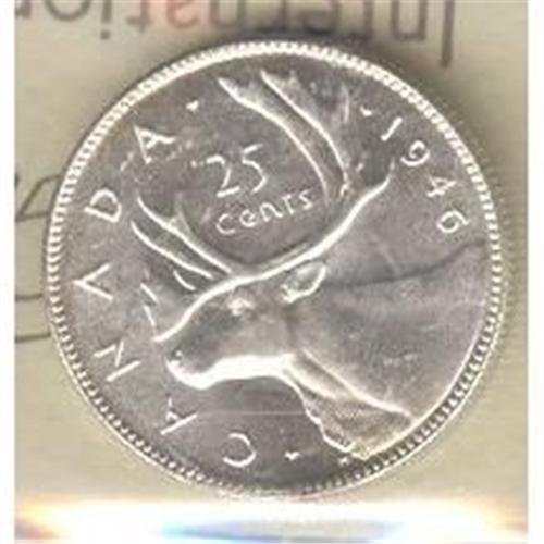 25 Cents 1946, graded ICCS MS-64. Beautiful untoned coin.