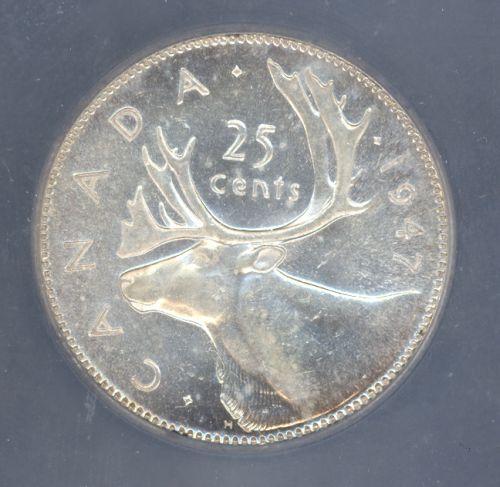 25 Cents 1947, ICG & ICCS MS-63; Dot