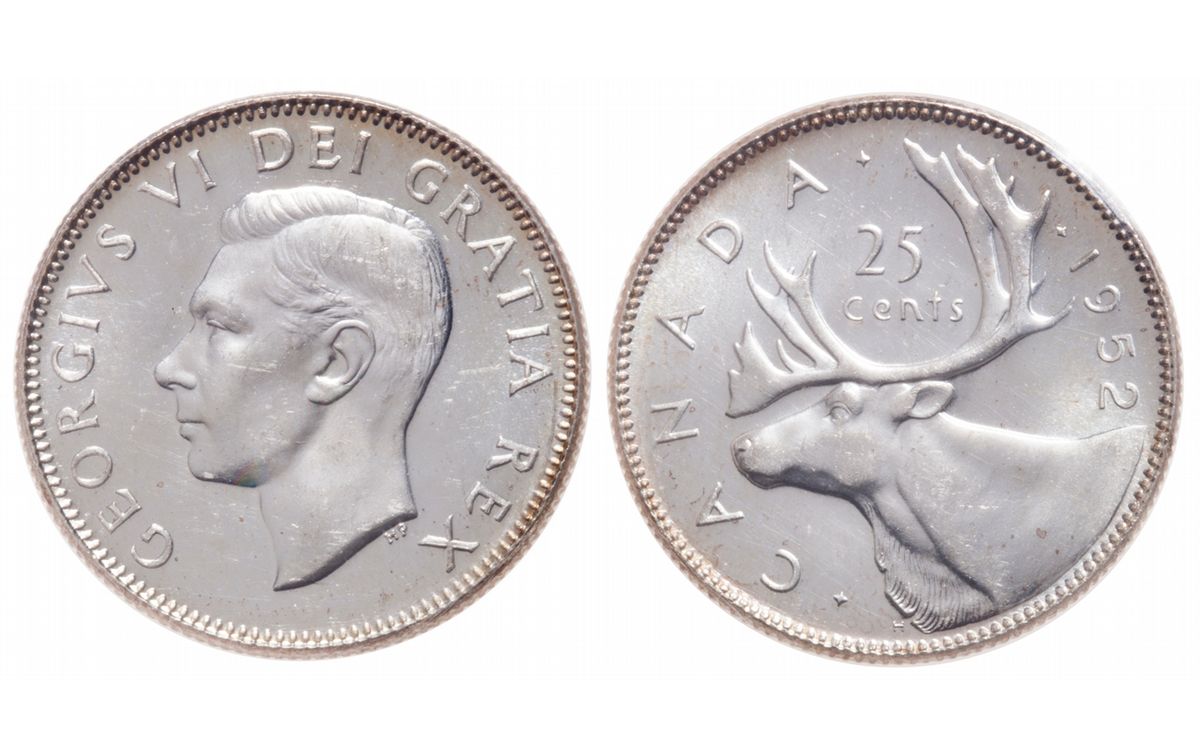 25 Cents. 1952. Low Relief, Heavy Cameo. ICCS graded Gem Uncirculated-65. Mirror fields and a superbly frosted Cameo set this stunning coin apart from a typical Gem. It is unclear if any other coins graded by ICCS have received this designation. Tied finest graded by ICCS.