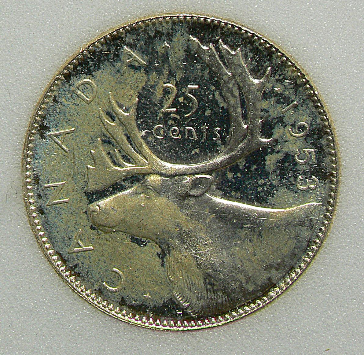 25 Cents 1953, graded NNC MS-66PL; No Strap. Small Date.
