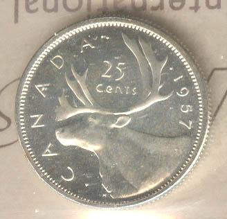 25 Cents 1957, graded ICCS PL-64.