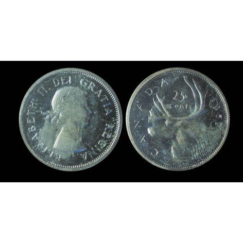 25 Cents 1959, graded ICCS PL-66 Ultra Heavy Cameo. Brillant with reflective surfaces. Just superb.