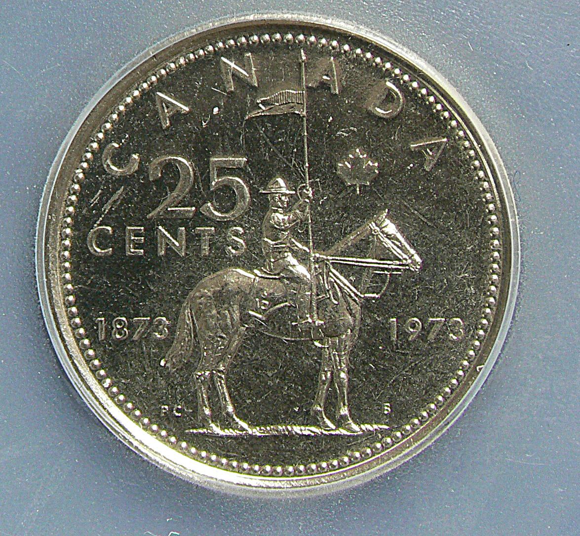 25 Cents 1973, graded ICG MS-65; Large Bust. Coin is UNC from Uncirculated Set.