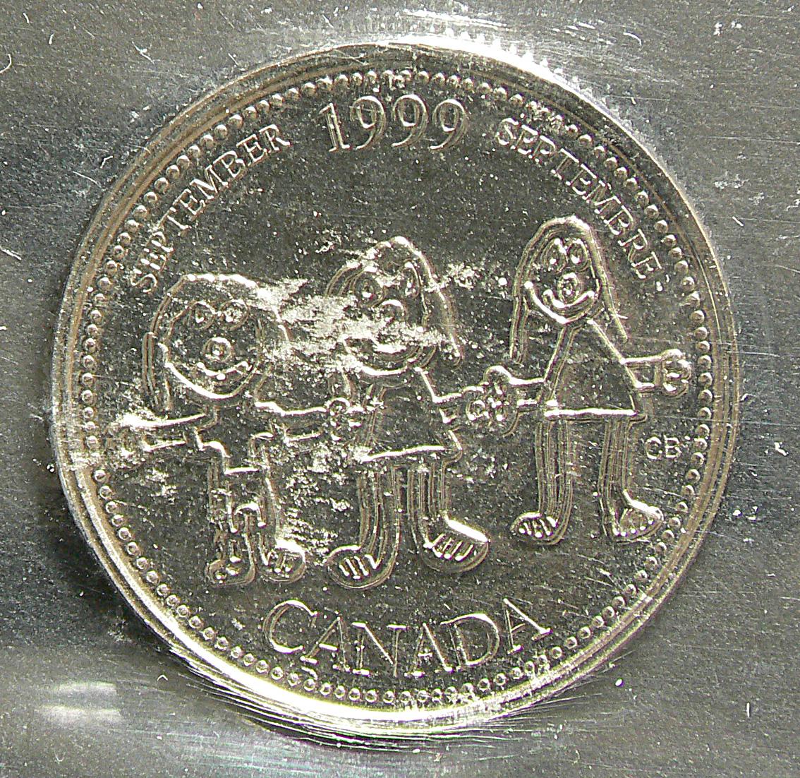 25 Cents 1999, graded ICCS MS-65; Numismatic BU, September Mule.