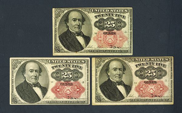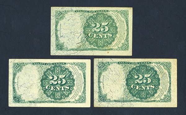 United States. Fr.1308 (2), short key), 1309 long key in treasury seal. Robert J. Walker at left. Signatures of Allison & Spinner. Very Fine or a bit better, some with tight margins and a spot or two. 3 pieces.